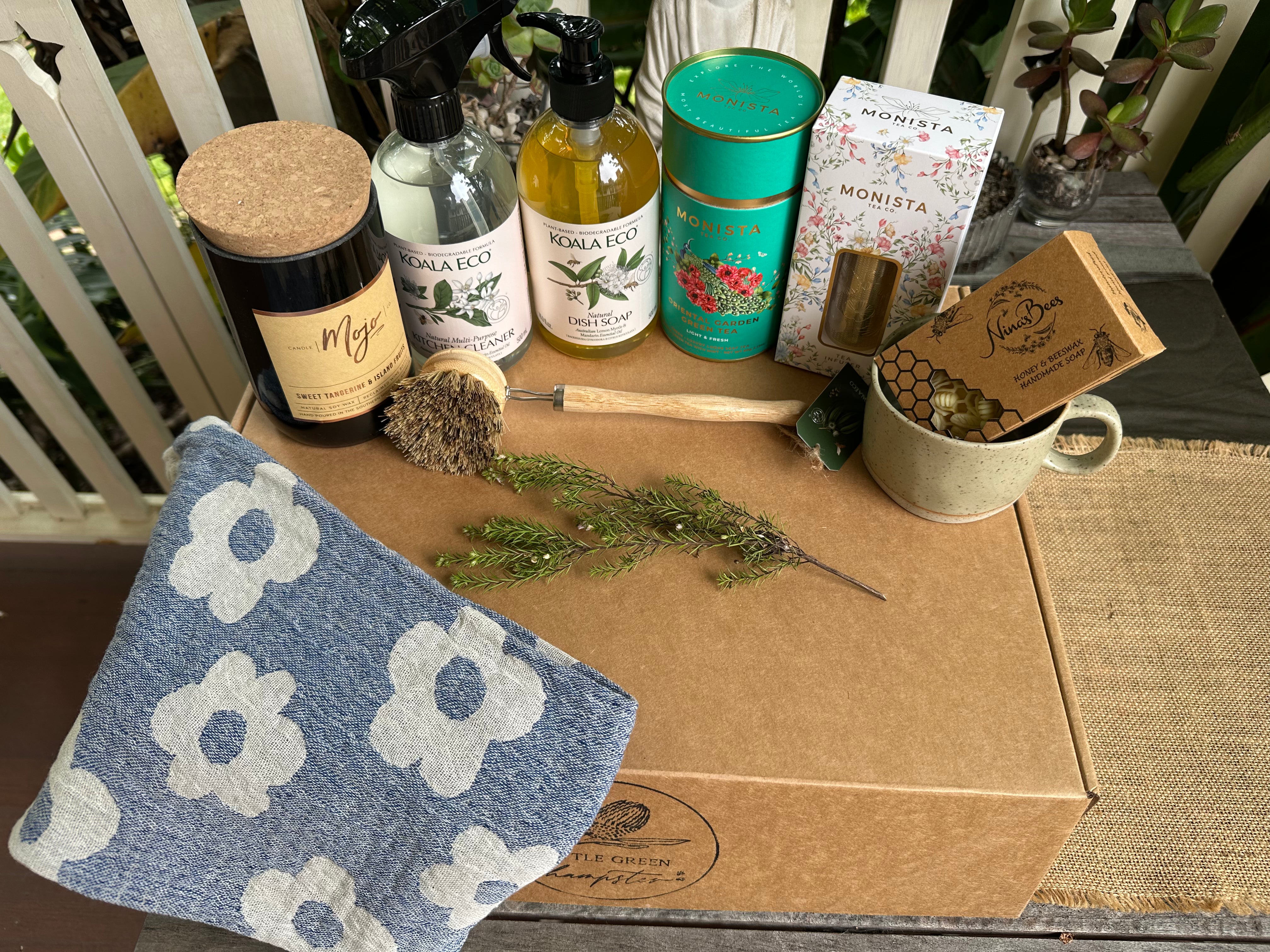- Optional handwritten message on a recycled paper card with Little Green Hampster logo.